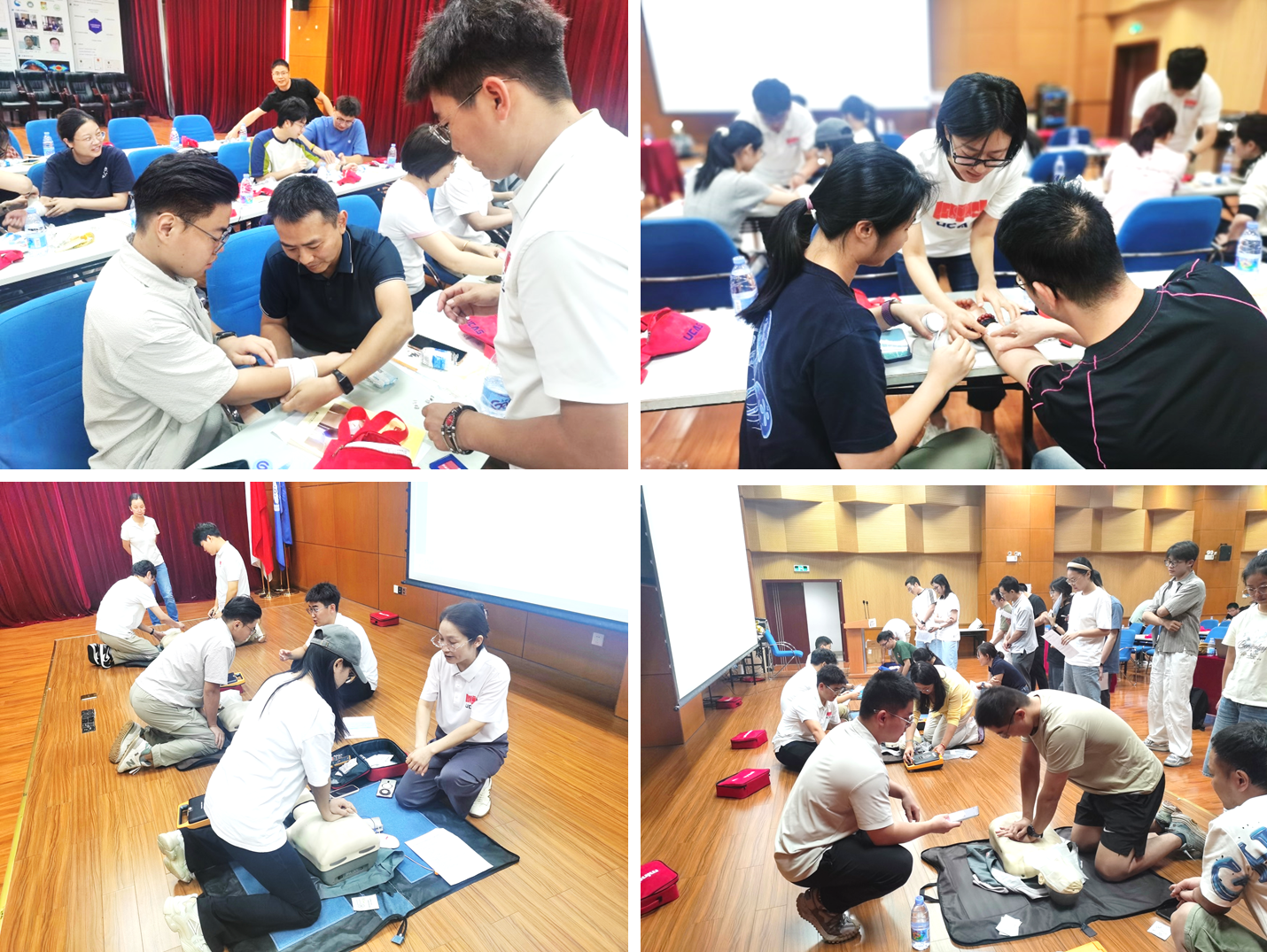 隨后,培訓(xùn)導(dǎo)師李龍興、夏侯一冉及助教導(dǎo)師們?yōu)榕c會學(xué)員進(jìn)行現(xiàn)場授課演示。培訓(xùn)導(dǎo)師詳細(xì)地介紹了止血包扎、氣道梗阻、骨折、溺水、失溫、動(dòng)物叮咬等野外科考常見意外情況的急救技能,并對自動(dòng)體外除顫儀(AED)的使用方法結(jié)合心肺復(fù)蘇(CPR)具體流程,一對一地指導(dǎo)學(xué)員進(jìn)行實(shí)操練習(xí)。培訓(xùn)過程中,學(xué)員們認(rèn)真聽講、積極實(shí)操。經(jīng)過培訓(xùn)導(dǎo)師們的悉心指導(dǎo)演練,參與培訓(xùn)的學(xué)員全部通過了急救培訓(xùn)筆試及實(shí)操考核,獲得了國內(nèi)認(rèn)可的急救員資格證。